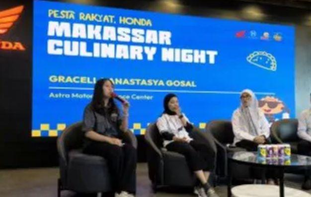 Office Promotion Honda, Adi Ridwan yang diwakili oleh Showroom Head Astra Motor Xperience Center, Gracella Anastasya Gosal mengatakan bergabungnya Honda menjadi sponsor utama dalam event kuliner Makassar Culinary Night merupakan bentuk dukungan terhadap salah satu daya tarik Kota Makassar sebagai kota dengan kuliner yang enak di Indonesia.