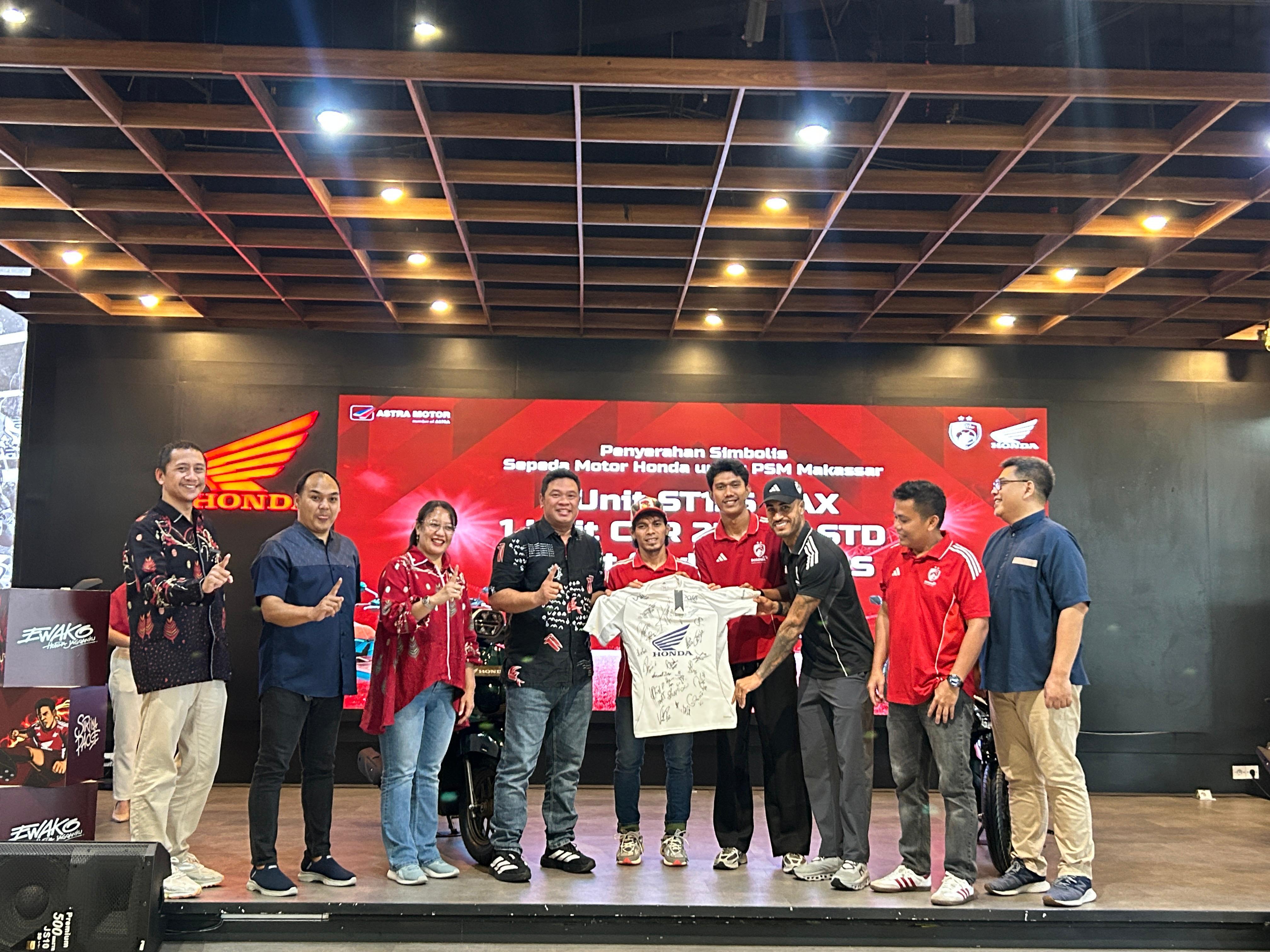 Asmo Sulsel — Astra Motor Sulawesi Selatan (Asmo Sulsel) kembali menunjukkan komitmennya dalam mendukung dunia olahraga, khususnya sepak bola, dengan menyerahkan 15 unit sepeda motor Honda kepada PSM Makassar. Dukungan ini menjadi bagian dari kerja sama berkelanjutan antara Asmo Sulsel sebagai main dealer sepeda motor Honda dan PSM yang selama ini dikenal sebagai kebanggaan masyarakat Kota Makassar.