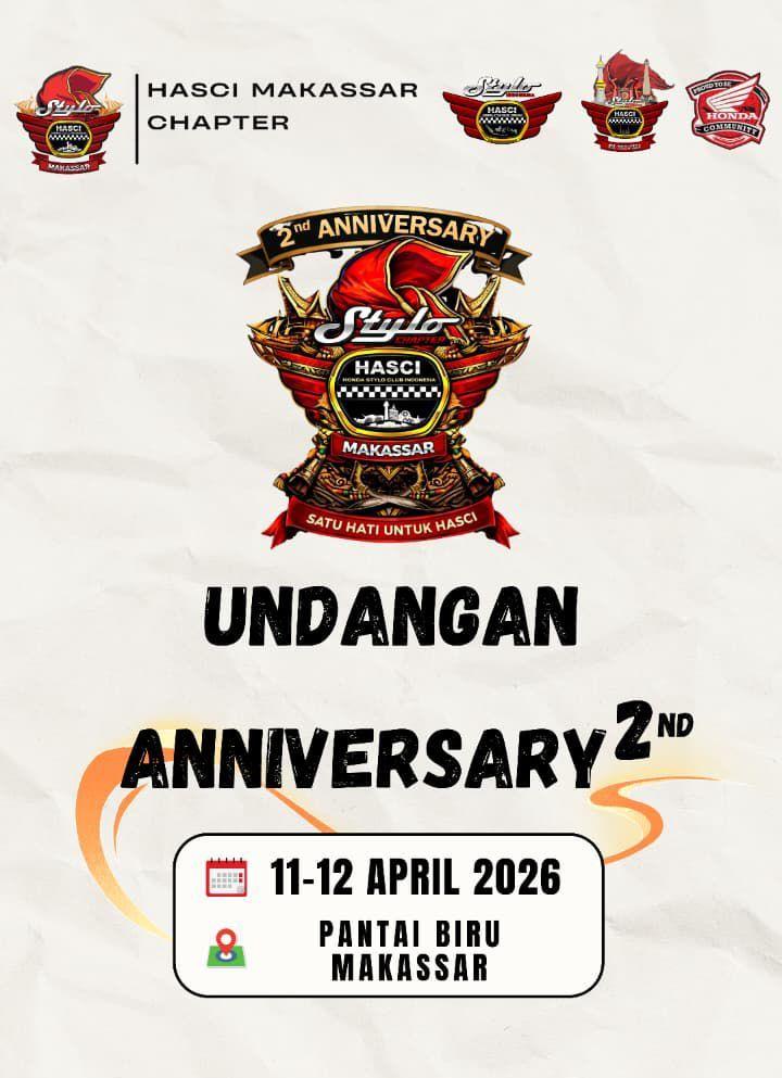 Asmo Sulsel - HASCI (Honda Astra Stylo Club Indonesia) Chapter Makassar bersiap menggelar Anniversary ke-2 Tahun di tahun 2026.