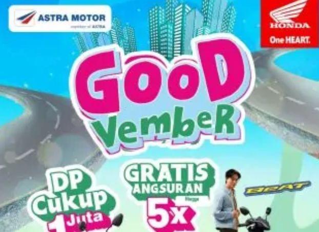 Program GoodVember memberikan kesempatan bagi konsumen untuk memiliki Honda Genio dan Honda BeAT dengan DP mulai Rp 700 ribu, serta tambahan gratis angsuran hingga 5 kali.