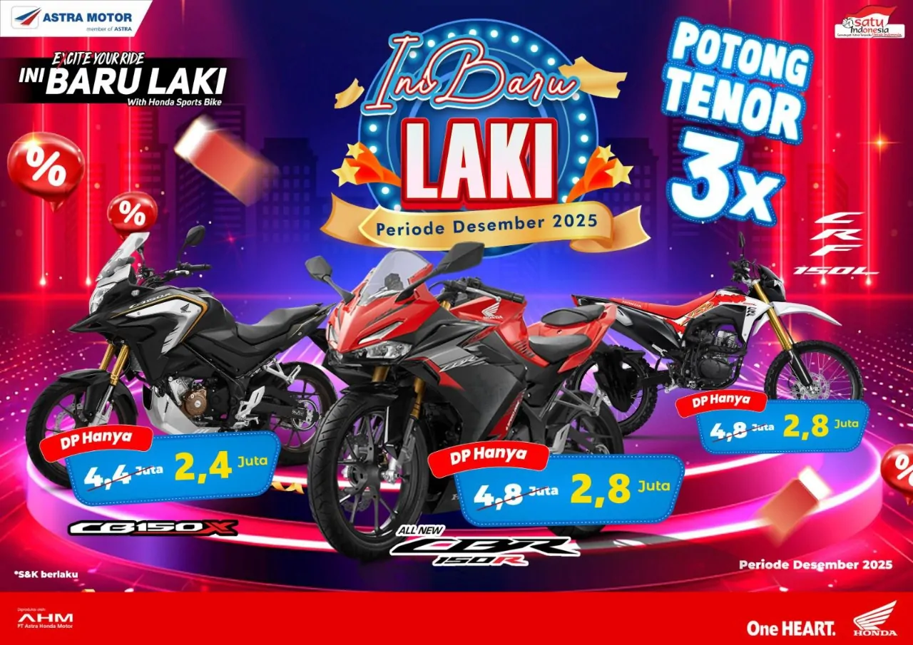 Dengan performa mesin yang bertenaga, promo ini menjadi kesempatan ideal untuk memiliki motor sport premium Honda dengan cicilan yang lebih ringan.