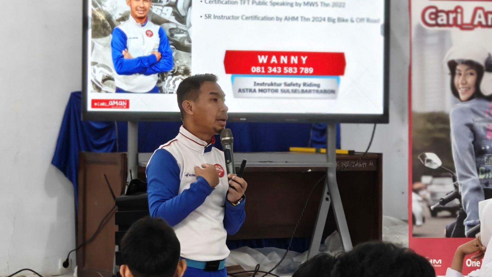 Dalam sesi edukasi tersebut, Wanny selaku instruktur safety riding Asmo Sulsel menyampaikan berbagai materi penting seputar keselamatan berkendara. Mulai dari tips berkendara yang aman dan bertanggung jawab, faktor-faktor utama penyebab kecelakaan lalu lintas, hingga pentingnya menjaga fokus dan kondisi tubuh yang prima saat berkendara.